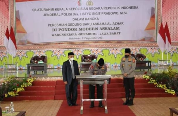 Sukabumi,PUBLIKASI-Wakil Bupati sukabumi Iyos Somantri mendampingi Kapolri Jenderal Polisi Listyo Sigit Prabowo ke pondok pesantren Modern Assalam Puteri Desa Sukaharja kecamatan warungkiara kabupaten sukabumi untuk meresmikan Gedung Al Azhar dan meninjau pelaksanaan vaksinasi,senin 13/9/2021.