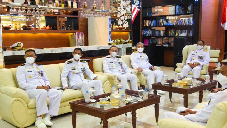 Panglima Kolinlamil Laksda TNI Erwin S Aldedharma bersama jajarannya mengikuti upacara peringatan HUT TNI ke-76 dari Mako Kolinlamil, Jakarta Utara. Upacara peringatan yang dipimpin langsung Presiden Jokowi dari Istana Negara, Jakarta diikuti oleh seluruh jajaran TNI diseluruh Indonesia. Adapun upacara digelar dengan menerapkan protokol kesehatan yang ketat, mulai dari memakai masker serta menjaga jarak.