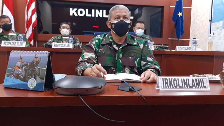 Jakarta, PUBLIKASI – Inspektorat Komando Lintas Laut Militer Laksma TNI Frendy H Saragih menerima Tim Pengawasan Pemeriksaan (Wasrik) dari Badan Pemeriksaan Keuangan (BPK) Republik Indonesia melalui video conference dari ruang Puskodal, Mako Kolinlamil, Tanjung Priok, Jakarta Utara, Senin (1/11).