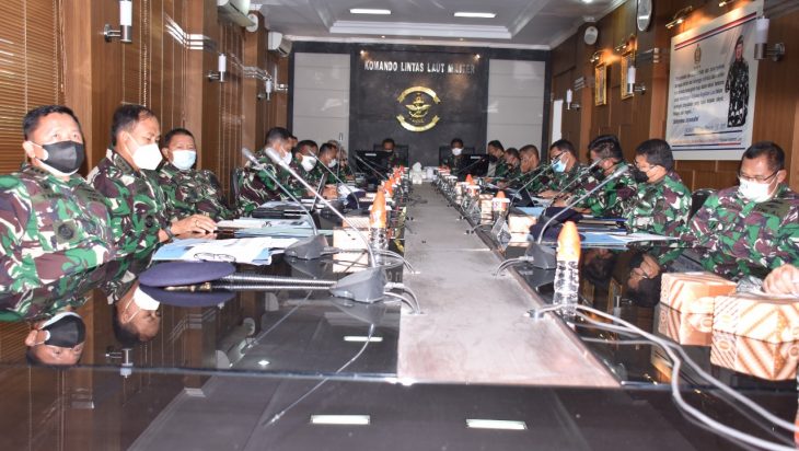 Jakarta, PUBLIKASI – Panglima Komando Lintas Laut Militer (Kolinlamil) Laksda TNI Erwin S Aldedharma memimpin Rapat Penyelarasan usulan rencana program dan kegiatan beserta kebutuhan anggaran Kolinlamil Tahun 2023 dari Ruang Rapat Panglima, Mako Kolinlamil, Tanjung Priok, Jakarta Utara, Senin (1/11). Kegiatan penyelarasan tersebut juga diikuti oleh Satlinlamil 2 Surabaya dan Satlinlamil 3 Makassar melalui vicon.