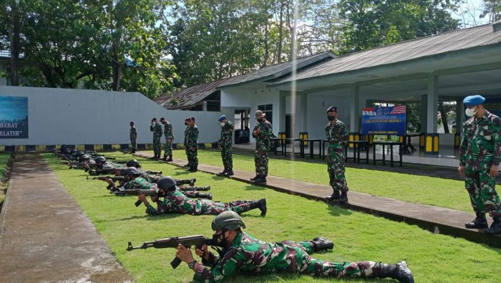 Satuan Lintas Laut Militer (Satlinlamil) 3 Makassar melaksanakan latihan menembak yang diawali dengan metode driil kering acu bidik di Lapangan Tembak Mako Lantamal VI, Makassar, beberapa saat yang lalu.
