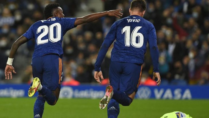 Gol pertama Los Blancos dicetak oleh Vinicius Junior di menit ke-47. Gol tersebut tercipta melalui tendangan kaki kanan Vinicius yang bersarang ke sudut kiri bawah gawang Alex Remiro penjaga gawang Sociedad.