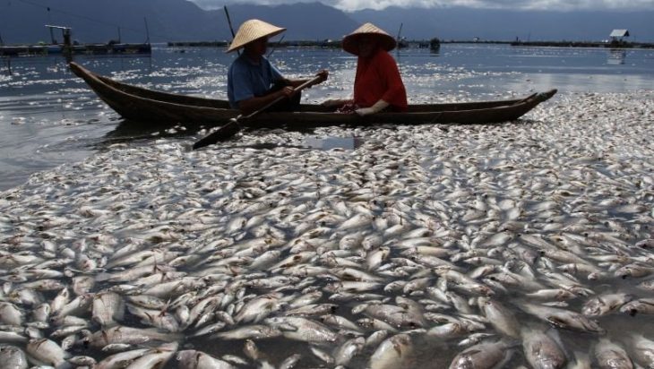 Menurutnya, ratusan ton ikan itu mati akibat pembalikan air di dasar danau vulkanik. Pembalikan ini terjadi karena angin kencang dan curah hujan tinggi.