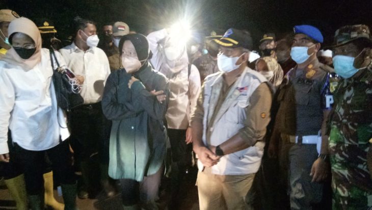 Tri Rismaharini tiba dilokasi banjir bandang tepatnya di Sekolah Dasar (SD) Tamiang, desa Tamiang Kecamatan Batang Lubu Sutam, Palas,Sumut, sekira pukul 20.30 Wib.