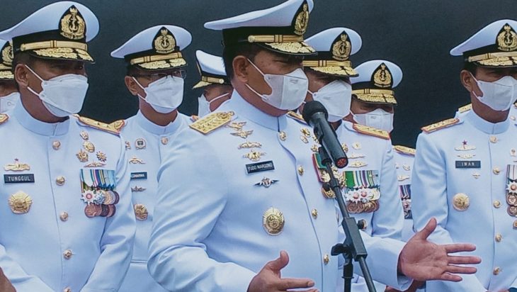 Jakarta, PUBLIKASI – Panglima Komando Lintas Laut Militer Laksda TNI Erwin S Aldedharma mengikuti prosesi Upacara Tabur Bunga di laut dalam rangka peringatan Hari Dharma Samudera tahun 2022 di atas geladak KRI Wahidin Sudirohusodo-991, bertindak selaku Inspektur Upacara Kepala Staf Angkatan Laut Laksamana TNI Yudo Margono di Dermaga Madura Tengah, Koarmada II Surabaya, Sabtu (15/1).