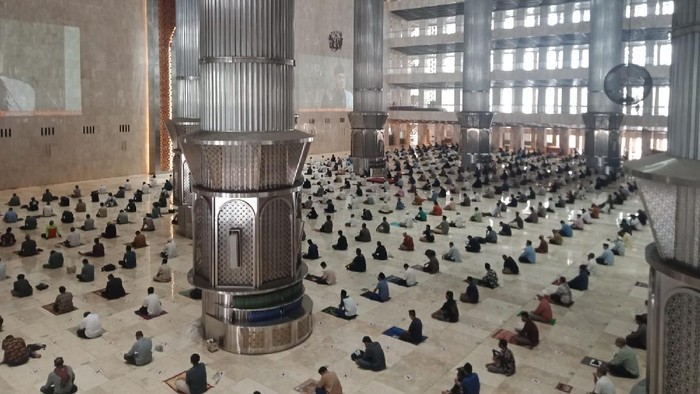 “Gerbang masjidnya belum dibuka full seperti saat keadaan normal. Prokes terutama saf masih berjarak,” Wakil Ketua bidang Penyelenggara Peribadatan Masjid Istiqlal, Abu Hurairah.