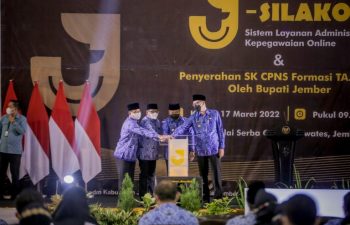 Jember, PUBLIKASI – Bupati Jember Ir. H. Hendy Siswanto, ST. IPU. menyerahkan SK pengangkatan kepada 555 CPNS hasil perekrutan pada …