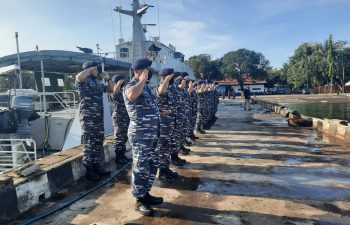 Makassar, Publikasi – KRI Teluk Bintuni-520 yang masih mengemban tugas operasi dukungan angkutan laut militer pergeseran pasukan purna tugas Satuan …