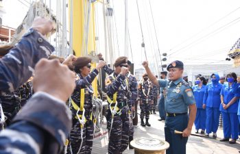 Jakarta, PUBLIKASI – Memasuki alur perairan pelabuhan Tanjung Priok, dari geladak KRI Bimasuci terdengar ‘prayen’ peran parade roll… peran parade …