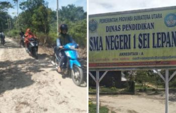 Langkat, Publikasi – Akses Jalan utama menuju SMA Negeri I Sei Lepan sangat memperihatinkan dengan kondisi berlubang dan berdebu serta …