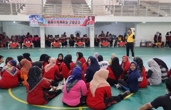 Padang Lawas, PUBLIKASI – Polisi Resor Kabupaten Padang Lawas mensosialisasikan bahaya Narkoba Kepada peserta Senam Sehat dalam rangka memeriahkan HORNAS …