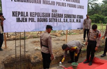 Padang Lawas, PUBLIKASI – Kepala Kepolsian Resor Kabupaten Padang Lawas, AKBP Diari Astetika SIK letakkan batu pertama pembangunan Mesjid Polres …