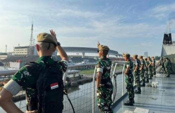Jakarta, PUBLIKASI — Dari Dermaga Mako Kolinlamil Tanjung Priok, Jakarta Utara. Tampak Kapal Perang Republik Indonesia (KRI) Banda Aceh-593 (KRI …