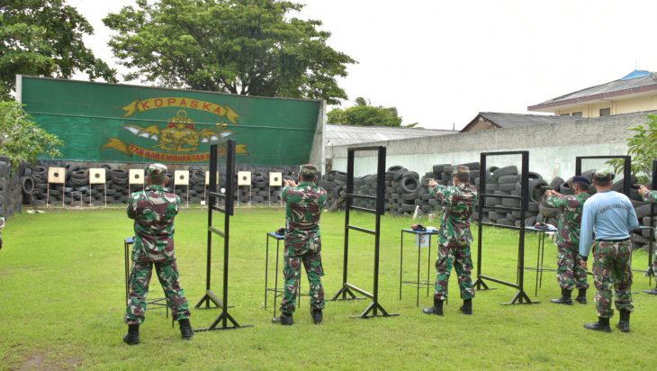 Jakarta, PUBLIKASI – Prajurit Satuan Lintas Laut Militer 1 mengikuti latihan praktek menembak di lapangan tembak Satkopaska, Pondok Dayung, Jakarta Utara, Kamis (10/2).