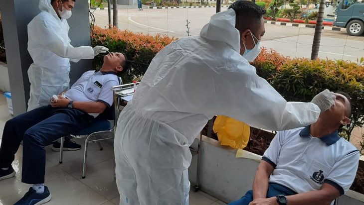 Jakarta, PUBLIKASI – Para pejabat jajaran Kolinlamil secara bergantian dan disiplin laksanakan prokes Covid-19 melaksanakan swab antigen dan swab Polymerase Chain Reaction (PCR) yang dilakukan oleh petugas kesehatan dari Dinas Kesehatan Kolinlamil di Balai Pengobatan Mako Kolinlamil, Tanjung Priok, Jakarta Utara, Jumat (11/2).