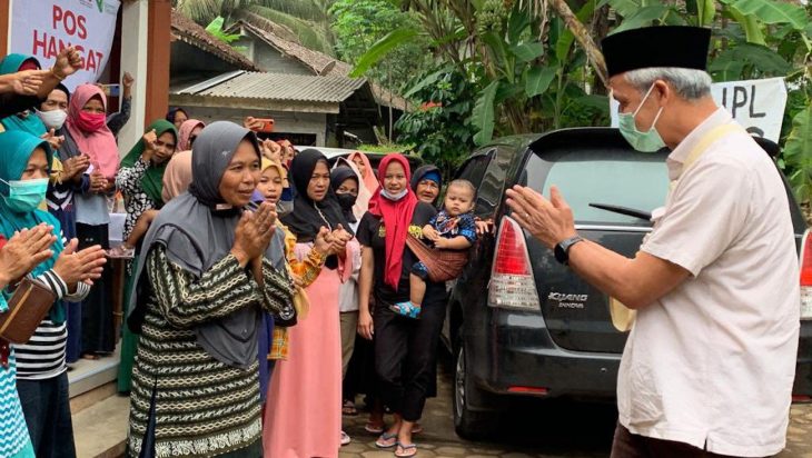 “Sekedar kenang-kenangan, ini sebagian kecil pak dari hasil bumi desa kami,” kata seorang warga kepada Ganjar.