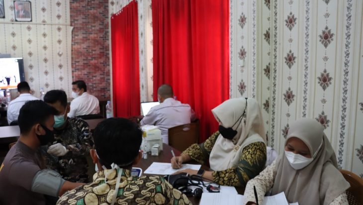 “Warga yang di vaksin hari ini yaitu yang belum di vaksin I, II dan vaksin ke III boster. kata Kapolres KABP Indra Yanitra Irawan S.I.K MS.i melalui Kasatreskrim AKP Aman Putra B. SH.