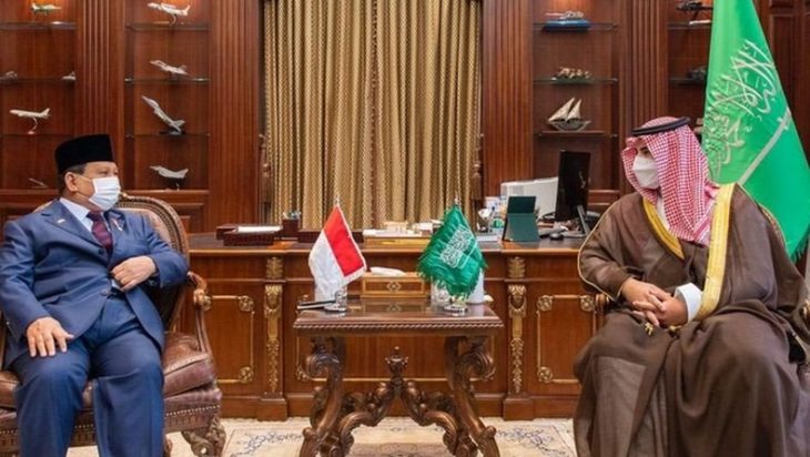 Jakarta, PUBLIKASI – Menteri Pertahanan (Menhan) Prabowo Subianto bertemu Wakil Menteri Pertahanan Arab Saudi, Pangeran Khalid bin Salman di Kantor Kementerian Pertahanan Arab Saudi, Senin (7/3).