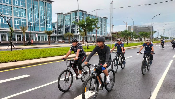 Dengan menempuh route sejauh kurang lebih 25 Km, Komandan Satlinlamil 3 Kolonel Laut (P) Yulis Andreas Lorentinus bersama Komandan KRI Banjarmasin-592 Letkol Laut (P) Bambang Purnomo diikuti oleh anak buahnya dengan penuh semangat dan suasana keakraban mengayuh sepedanya secara tertib dan teratur agar tidak mengganggu lalu lintas di sekitarnya.
