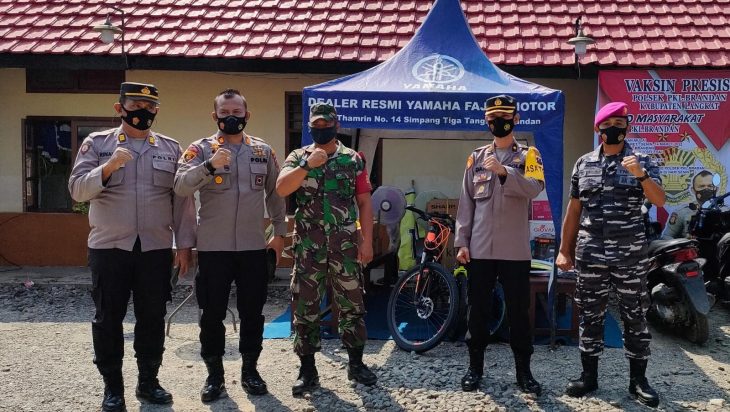 Dipimpin Danton Bekhar Kompi Markas Yonif 8 Marinir Letda Marinir Eko Kurniawan membawa 1 tim kesehatan bersinergi dengan Polsek Pangkalan Berandan, Koramil 13 Pangkalan Berandan serta Puskesmas Desa Lama, Puskesmas Pangkalan Berandan, Puskesmas Tangkahan Durian dan Puskesmas Securai dengan menyediakan sebanyak 360 dosis yang siap di vaksinkan ke warga Pangkalan Berandan.