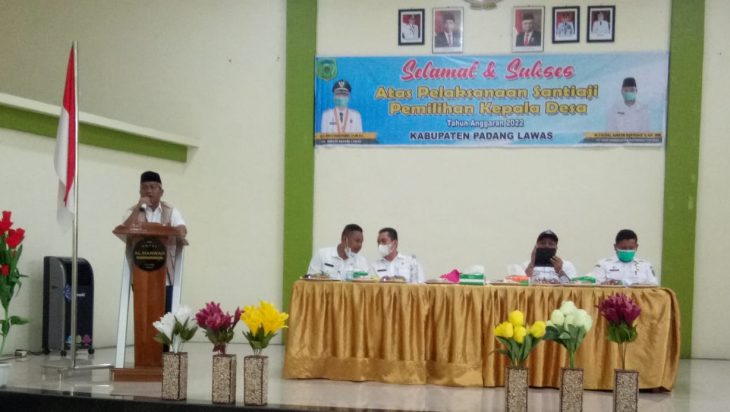 Pernyataan ini disampaikan Kadis PMD Kabupaten Padang Lawas Paisal Amrin Siregar dalam paparannya pada acara Santiaji pemilihan kepala desa tahun anggaran 2022, di Aula Hotel Marwah, Kecamatan Barumun, Kabupaten Padang Lawas, Sumatera Utara, Rabu 16 Maret 2022.