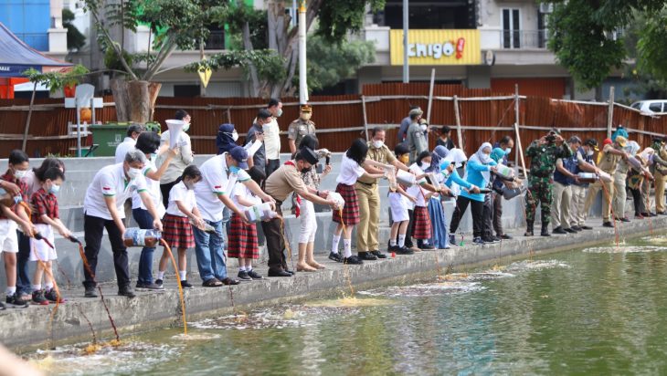 Jakarta, PUBLIKASI – Walikota Kota Administrasi Jakarta Utara, Ali Maulana Hakim tuang empat ton cairan Eco Enzyme ke Danau Sunter, Selasa (22/3). Kegiatan ini dilakukan dalam rangka memperingati Hari Air Sedunia.
