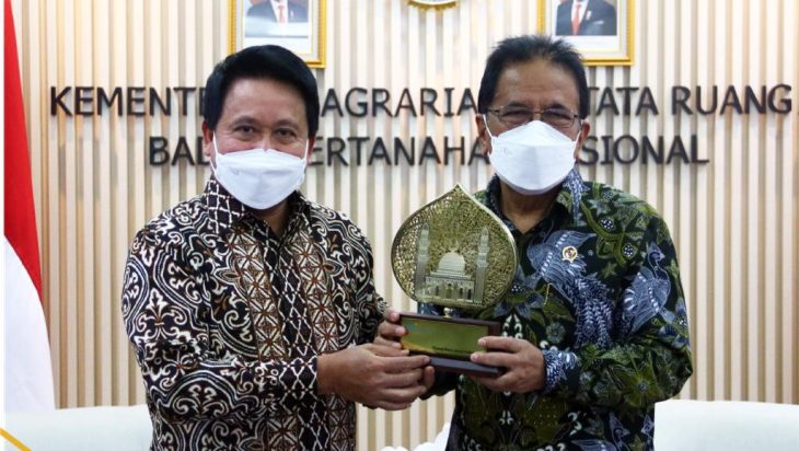 Jakarta, PUBLIKASI – Menteri Agraria dan Tata Ruang/Kepala Badan Pertanahan Nasional (ATR/BPN), Sofyan A. Djalil menerima audiensi dari Bank Syariah Indonesia (BSI) di Ruang Rapat Menteri ATR/Kepala BPN, Jumat (22/04/2022). Direktur Utama BSI, Hery Gunardi mengutarakan maksud kedatangannya, yaitu terkait permohonan Memorandum of Understanding (MoU) untuk dapat menjalin kerja sama dengan Kementerian ATR/BPN.