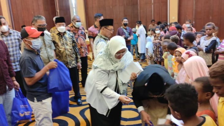 “Untuk saat ini ada sekitar 99 anak yatim piatu, dan untuk yatim piatu nya ada 45 orang yang betul betul tidak memilik bapak dan mama dan anak-anak ini terdiri dari beberapa suku asli Papua yang ada di wilayah selatan Papua, lalu untuk anak-anak difabel sendiri memang agak sulit menghadirkan mereka karena harus ada pendampingan khusus, namun alhamdulillah ada juga yang sempat hadir tadi.” Ungkap Fauzun.