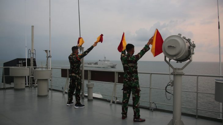 Jakarta, PUBLIKASI – Bersama-sama dengan KRI Banda Aceh-593, KRI Banjarmasin-592 meninggalkan pelabuhan Pelabuhan Tanjung Mas, Semarang dengan membawa Satuan Tugas Latihan Integrasi Taruna Wreda (Latsitarda) Nusantara XLII tahun 2022 menuju Nusa Tenggara Barat, Senin (9/5). Memasuki perairan Laut Jawa, Taruna Taruni Akademi Angkatan Laut Tingkat IV Angkatan ke-67 korps Pelaut di kedua KRI jenis LPD tersebut langsung naik ke anjungan dan geladak terbuka untuk melaksanakan latihan praktek ‘passex’, passing exercise.