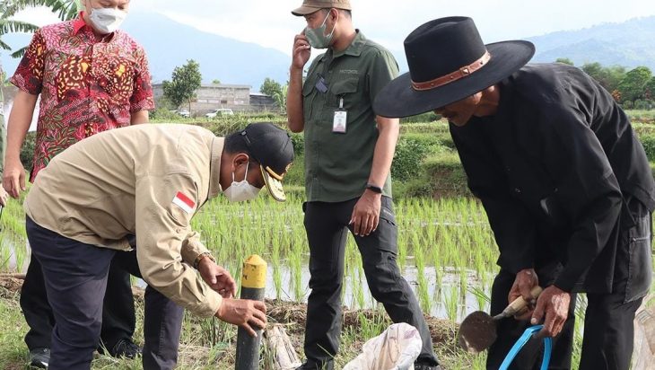 Bandung, PUBLIKASI – Wakil Menteri Agraria dan Tata Ruang/Wakil Kepala Badan Pertanahan Nasional (Wamen ATR/Waka BPN), Surya Tjandra menghadiri kegiatan Gerakan Pemasangan Tanda Batas & Persetujuan Tetangga Batas di Desa Jagabaya, Kecamatan Cimaung, Kabupaten Bandung, Kamis (12/05/2022). Kegiatan ini sebagai wujud partisipasi masyarakat dalam mempercepat proses pendaftaran tanah dalam program Pendaftaran Tanah Sistematis Lengkap (PTSL).