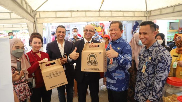 Jakarta, PUBLIKASI – Walikota Kota Administrasi Jakarta Utara, Ali Maulana Hakim bersama Duta Besar (Dubes) Kerajaan Maroko untuk Indonesia, Quadia Benabdellah, Founder Mama is My Hero, Richard Adam, dan Camat Cilincing, Muhammad Andri meluncurkan program Kios Mama is My Hero dan UMKM Corner di area Kantor Camat Cilincing, Kamis (19/5).