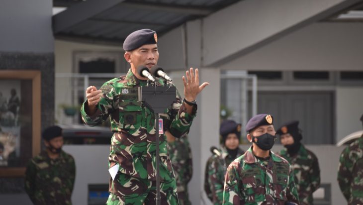 Jakarta, PUBLIKASI – Asisten Intelijen Panglima Kolinlamil Kolonel Laut (E) Monang H. Sitompul berkesempatan menerima apel gabungan prajurit dan PNS Kolinlamil sekaligus memimpin upacara penaikan bendera merah putih di lapangan Mulyono Silam, Mako Kolinlamil, Tanjung Priok, Jakarta Utara, Senin (30/5).