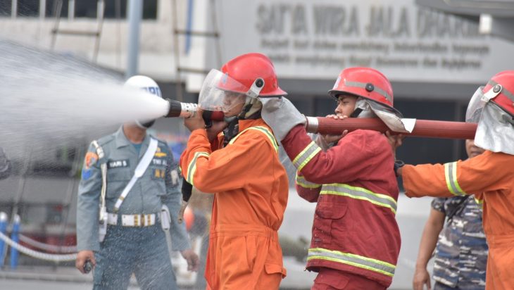 Jakarta, PUBLIKASI – Staf Operasi Detasemen Markas Komando Lintas Laut Militer menggelar latihan Triwulan II tahun 2022 dengan materi penanggulangan bahaya kebakaran dengan menggunakan Alat Pemadam Api Ringan (APAR) berjenis CO2 dan busa serta hydrant (air bertekanan tinggi) di Dermaga Kolinlamil, Tanjung Priok, Jakarta Utara, Jumat (24/6).