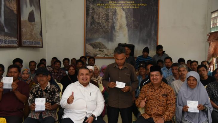 “Dalam hal ini pemerintah pusat juga memberikan fasilitas kepada pemerintah provinsi dan pemerintah kabupaten/kota,” ungkap Bupati saat penyerahan buku tabungan BSPS kepada warga Desa Biru dan Desa Labu Tayas, di ruang Kantor Camat Aek Bilah, Kecamatan Aek Bilah, Kabupaten Tapsel, Jumat (24/6).