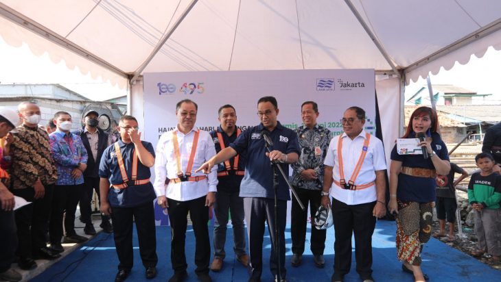 Jakarta, PUBLIKASI – Gubernur Provinsi DKI Jakarta, Anies Rasyid Baswedan menghadiri acara Hajatan 100 Hari Mengalir dan peletakan pipa pertama di RW 01 Kelurahan Kamal Muara, Kamis (30/6). Kegiatan ini dilakukan untuk memastikan akses air bersih untuk masyarakat Kamal Muara terus berlanjut.