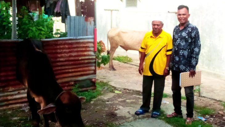 Sebanyak 3 ekor lembu dan 1 ekor kambing disembelih oleh Panitia pelaksana di halaman Musholla Nurul Hikmah di Jl.Dempo GG Mawar Lingkungan 5 Sri Bunian.