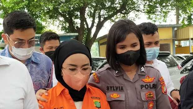 Medina yang menggunakan baju tahanan itu tampak digiring oleh sejumlah penyidik dari rutan menuju ke Gedung Ditreskrimum Polda Metro Jaya.