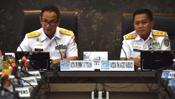 Jakarta, PUBLIKASI – Usai melaksanakan serah terima jabatan yang dipimpin oleh Wakil Kepala Staf Angkatan Laut Laksdya TNI Ahmadi Heri Purwono, Laksda TNI Erwin S. Aldedharma membacakan memorandum kepada Laksda TNI Agus Hariadi selaku pejabat Panglima Komando Lintas Laut Militer yang baru saja dilantik. Pembacaan memorandum tersebut dilaksanakan di Ruang Rapat Pangkolinlamil, Mako Kolinlamil, Tanjung Priok, Jakarta Utara, Senin (11/7) dan dihadiri oleh seluruh pejabat utama dan kepala satuan kerja Kolinlamil.