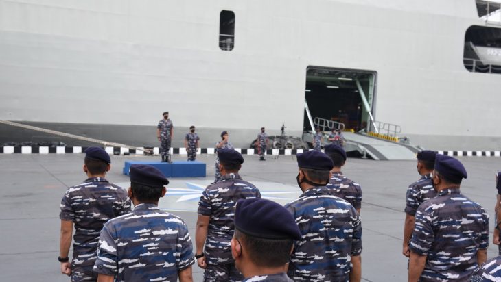 Jakarta, PUBLIKASI – Setelah menyerahkan tampuk Pimpinan Komando Lintas Laut Militer kepada Laksda TNI Agus Hariadi, Laksda TNI Erwin S. Aldedharma berkesempatan untuk melaksanakan exit briefing di hadapan seluruh prajurit dan Pegawai Negeri Sipil Kolinlamil yang berlangsung di lapangan Moeljono Silam, Mako Kolinlamil, Tanjung Priok, Jakarta Utara, Selasa (12/7).