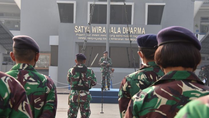 Jakarta, PUBLIKASI – Kepala Dinas Material dan Perbekalan Komando Lintas Laut Militer Kolonel Laut (T) Rachmat Susanto berkesempatan menerima apel gabungan prajurit dan PNS Kolinlamil sekaligus memimpin upacara penaikan bendera merah putih di lapangan Moeljono Silam, Mako Kolinlamil, Tanjung Priok, Jakarta Utara, Senin (18/7).