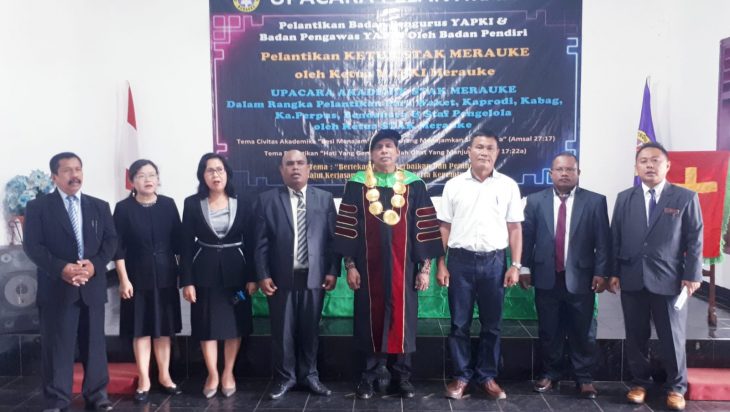 Papua Selatan, PUBLIKASI – Merauke – Sekolah Tinggi Agama Kristen ( STAK) Merauke melaksanakan Pelantikan Badan Pengurus YAPKI dan Badan Pengawas YAPKI, Pelantikan ini Badan Pergurus dan Pengawas ini sekaligus Dilakukan Pelantikan Ketua STAK yang baru, DR.Ronald Th.Imkota,S.Sos,M.M, M.PD.K mengantikan ketua sebelumnya,Lukas Lena,S.Pd,M.Pd dan ketua YAPKI masa bakti 2021-2026 Sulaiman Jambormias,S.Pd,M.Pd bertempat di kampus STAK Merauke.Rabu,20/07/22