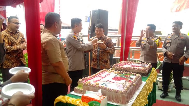 Kapoltes Tapsel AKBP Roman Smardhana Elhaj S IK bersama Kepala Kejaksaan Negeri Tapsel Antoni Setiawan SH bersama Sekda Tapsel Drs Parulian Nasution terlihat kompak tatkala menyuguhkan kue Ulang Tahun pada Kajari Tapsel Antoni Setiawan,yang bertempat di Plataran Kantor Kejaksaan Negeri Tapsel, Kelurahan Pasar Sipirok, Jumat (22/7).