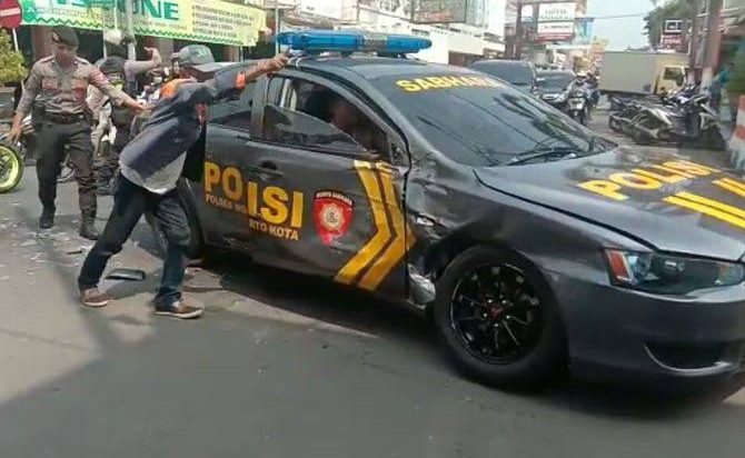 Edy menyebut akibat kecelakaan itu mobil patroli polisi mengalami kerusakan berupa bumper depan kendaraan copot.