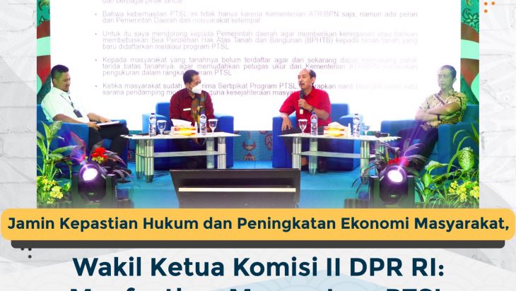 Agar kegiatan PTSL dapat berjalan dengan baik, perlu ada kerja sama dengan banyak pihak, salah satunya bersama dengan Komisi II Dewan Perwakilan Rakyat Republik Indonesia (DPR RI). Wakil Ketua Komisi II DPR RI, Yanuar Prihatin sebagai narasumber pada kegiatan ini mengajak masyarakat untuk memanfaatkan PTSL ini dengan sebaik mungkin.