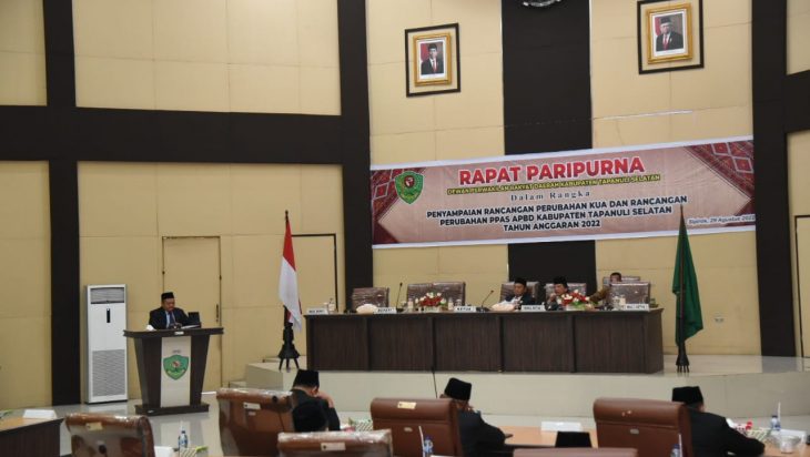 Rancangan Perubahan KUA dan Perubahan PPAS TA 2022 disampaikan Bupati pada sidang paripurna di Gedung DPRD Tapsel, Jalan Prof Lafran Pane, Sipirok, Senin (29/8).
