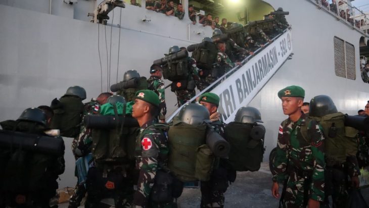 Jakarta, PUBLIKASI – Mengemban misi operasi dukungan angkutan laut militer pergeseran pasukan dan materiil Satuan Tugas Operasi Pengamanan Perbatasan Provinsi Papua Sektor Selatan tahun 2022, KRI Banjarmasin-592 yang saat ini sandar di Dermaga Bungkutoko, Kendari melaksanakan embarkasi 450 pasukan dan materiil dari Batalyon Infanteri 725/Woroagi, Minggu (28/8). Sebelum bertolak menuju daerah operasi, KRI Banjarmasin-592 dan pasukan Satgas dilepas keberangkatannya oleh Komandan Korem 143 Halu Oleo Brigjen TNI Yufti Senjaya.