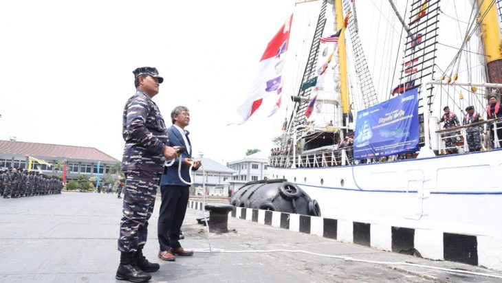 Jakarta, PUBLIKASI — Panglima Komando Lintas Laut Militer Laksda TNI Agus Hariadi menghadiri kegiatan pelepasan Ekspedisi Maritim tahun 2022 oleh Kepala Staf Angkatan Laut Laksamana TNI Yudo Margono didampingi Direktur Utama Tempo Inti Media Tbk Arif Zulkifli dari Dermaga Mako Kolinlamil, Tanjung Priok, Jakarta Utara, Kamis (22/9). Pelepasan Ekspedisi Maritim ditandai dengan melepas tali KRI Dewaruci dari dermaga Mako Kolinlamil yang selanjutnya akan berlayar menuju Cirebon sebagai bagian Etape 1 dari rangkaian Ekspedisi Maritim. Terhitung tanggal 22 September sampai dengan 17 Oktober 2022 mendatang Tim Ekspedisi akan mengeksplore tempat-tempat bersejarah di Pulau Jawa seperti Cirebon, Tegal, Semarang, Juwana, Rembang, Gresik, Surabaya, Pacitan, Yogyakarta, Cilacap, Pangandaran, Banten dan berakhir di Jakarta.
