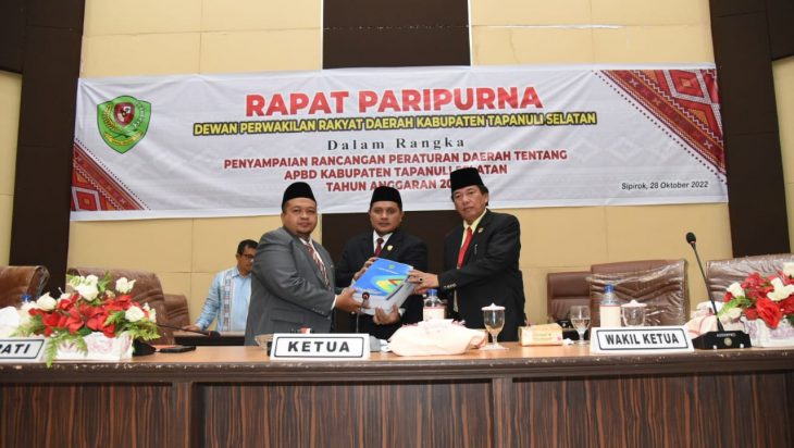 Tapsel, PUBLIKASI – Bupati Tapanuli Selatan (Tapsel), H Dolly Pasaribu, menyampaikan pengantar nota keuangan rancangan anggaran pendapatan dan belanja daerah (R-APBD) Kabupaten Tapsel tahun anggaran (TA) 2023 sebesar Rp1.403 triliun lebih ke DPRD pada sidang Paripurna DPRD setempat, Jumat (28/10).