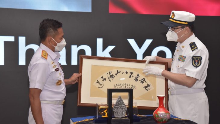 Jakarta, PUBLIKASI — Bersama Kepala Dinas Kesehatan Angkatan Laut dan sejumlah pejabat Kolinlamil, Panglima Komando Lintas Laut Militer Laksda TNI Agus Hariadi menerima kunjungan delegasi China dari kapal Chinese People Liberation Army Navy (CPLA-N) Hospital Ship Peace ARK 866 yang dipimpin oleh Commander of Mission Harmony 2022 Rear Admiral Qiu Wensheng di gedung Laut Nusantara, Mako Kolinlamil, Tanjung Priok, Jakarta Utara, Senin (14/11).