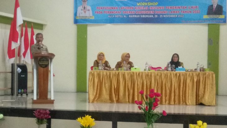 Padang Lawas, PUBLIKASI – Pemeintah Kabupaten Padang Lawas melalui Bagian Organisasi Sekretaris daerah Kabupaten Padang Lawas (Setdakab Palas) melaksanakan wokrshop penyusunan Laporan Kerja Instansi Pemerintah (LKJIP) kepada organisasi perangkat daerah tahun 2022, di Aula Hotel Marwah Jln Ki Hajar dewantara Sibuhuan, Palas, Senin 29 November 2022.